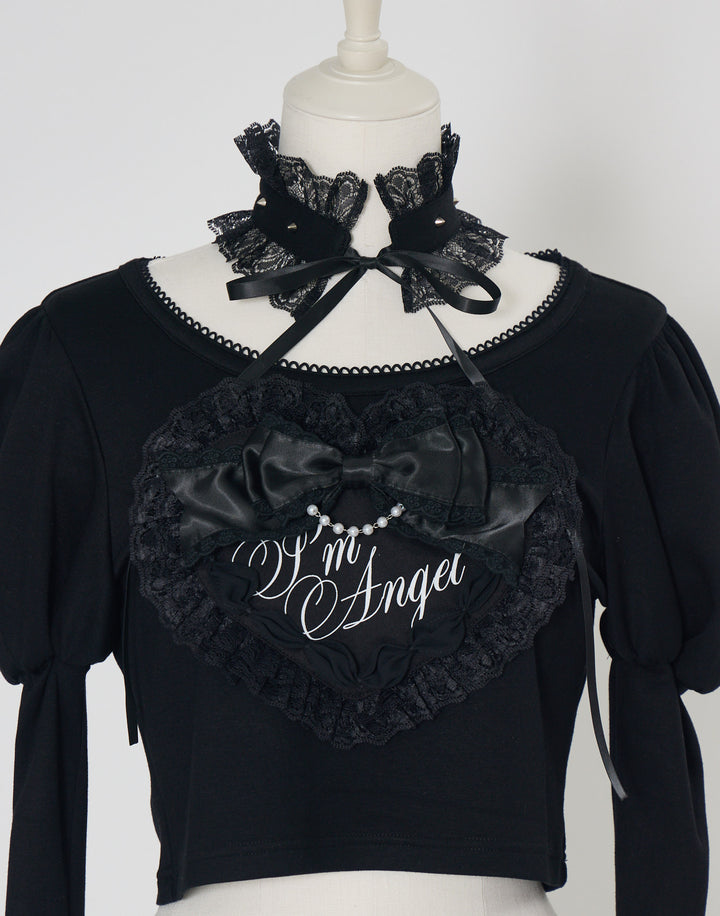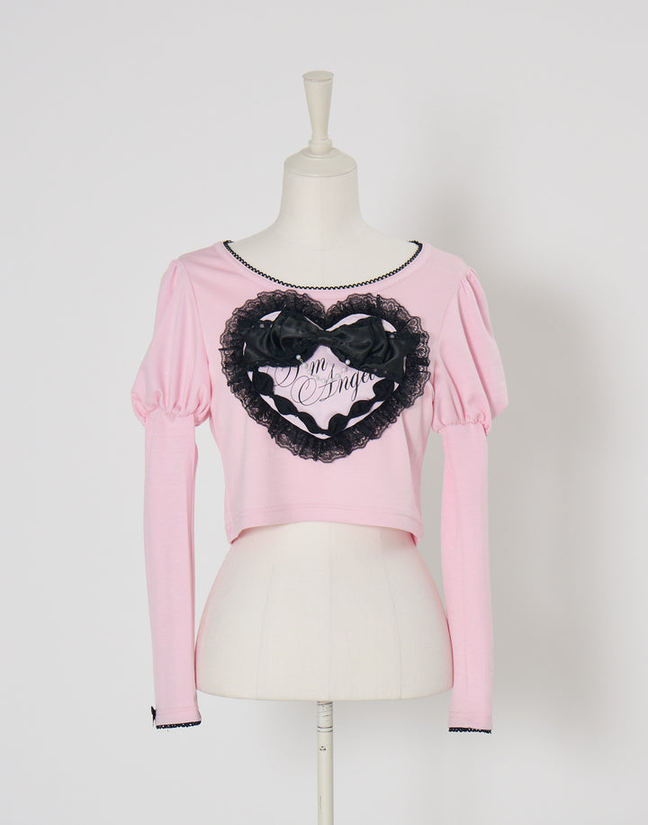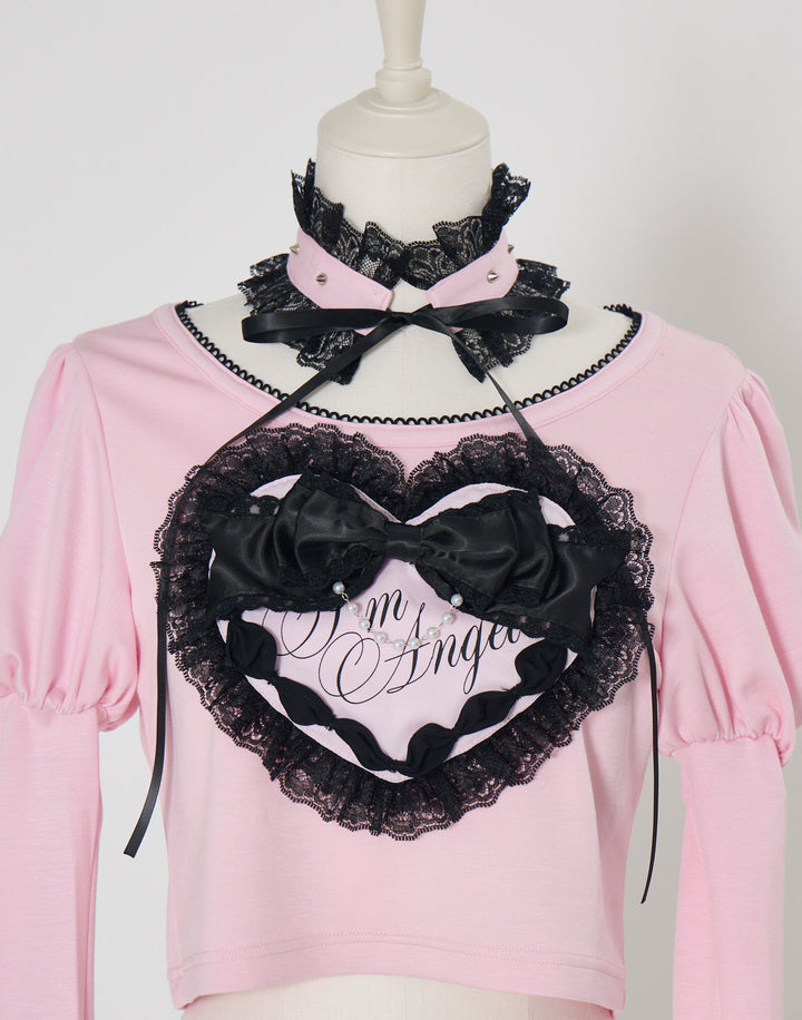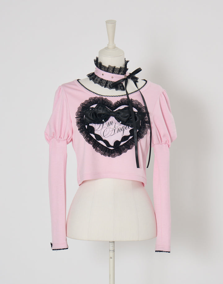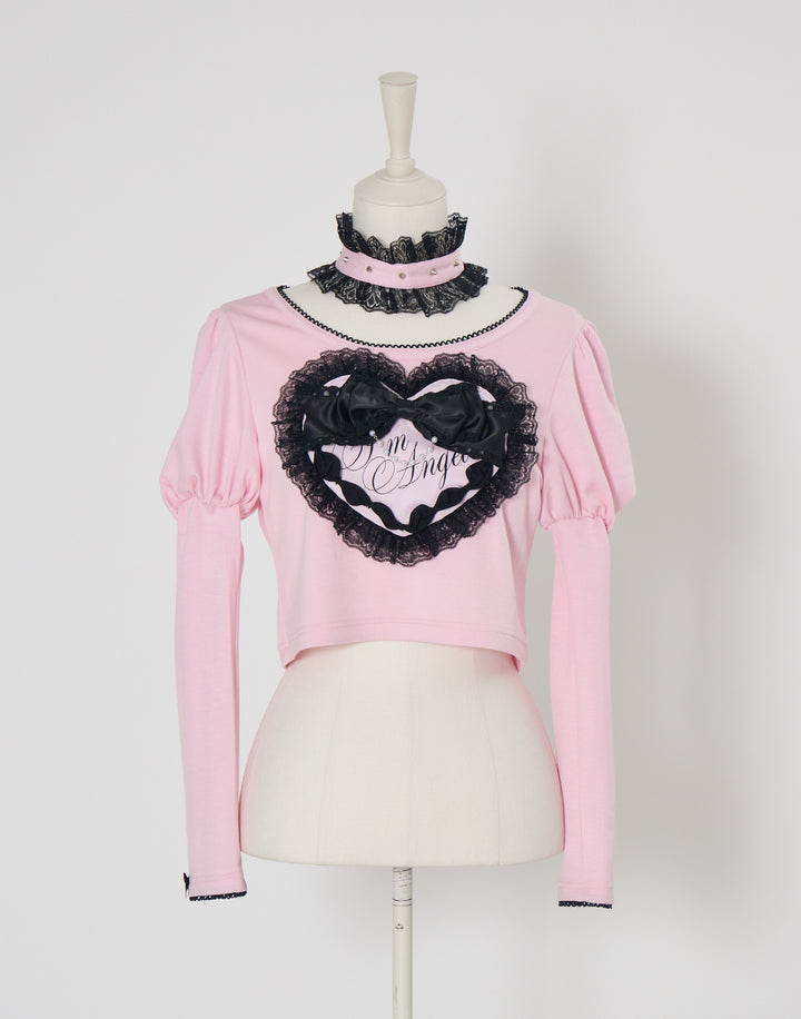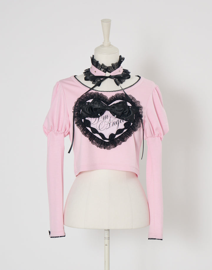 人気のハートモチーフをフロントにあしらったTシャツがロンT verで登場。ドレスライクなジゴスリーブとストレッチの効くカットソー素材が、甘さと抜け感を両立したデザインになっています。付属のチョーカーはヘッドドレスとしても使用可能。一枚でコーディネートの幅を広げる優秀トップスです。フロントのパールは取り外し可能。