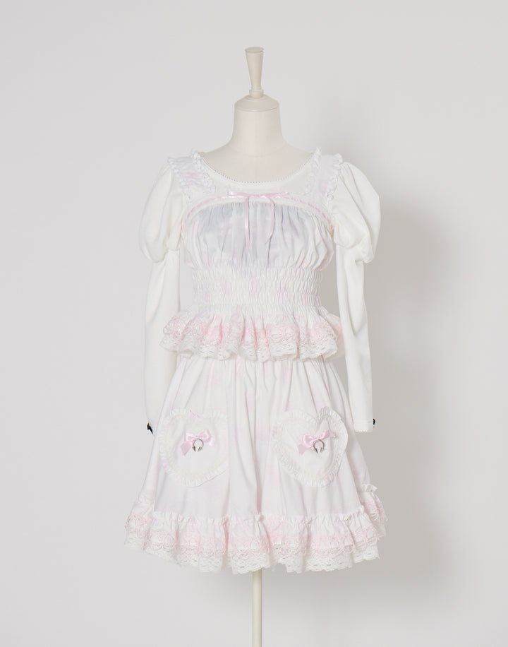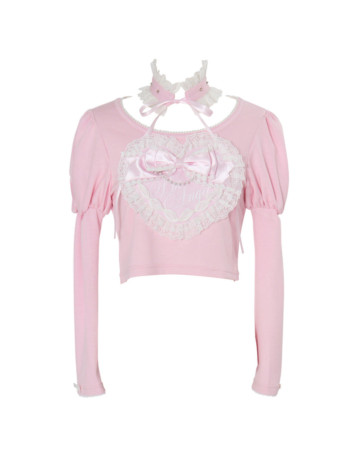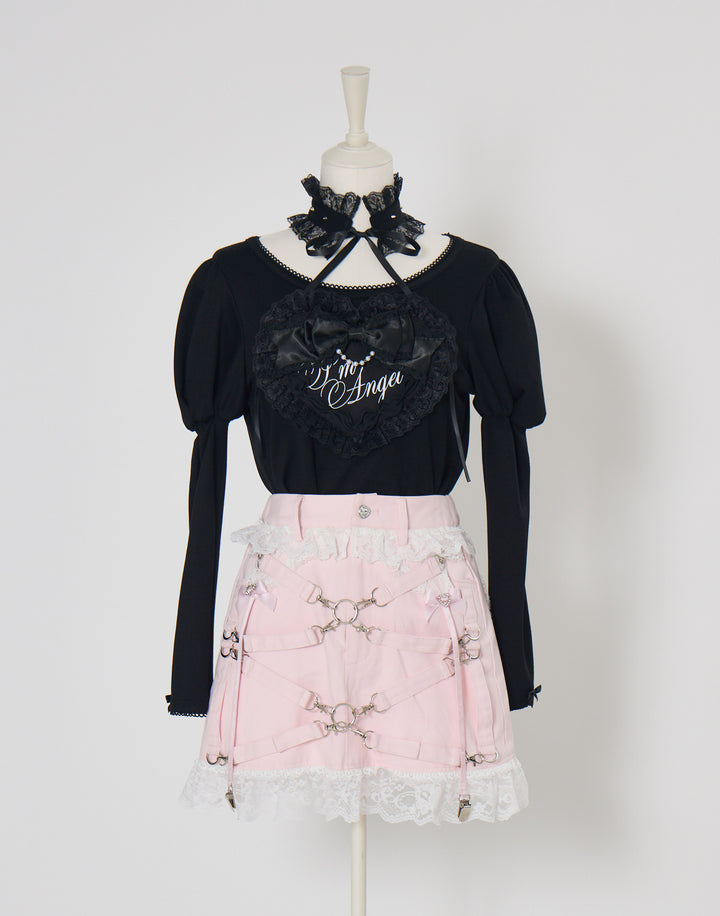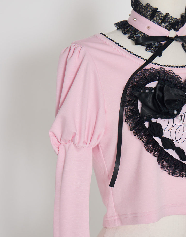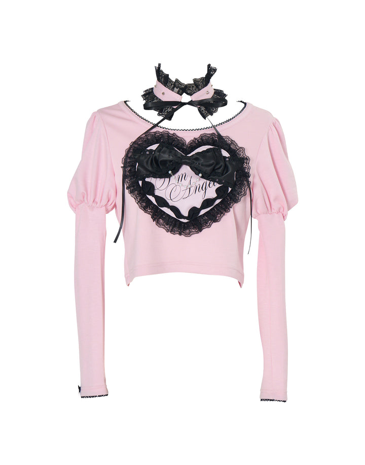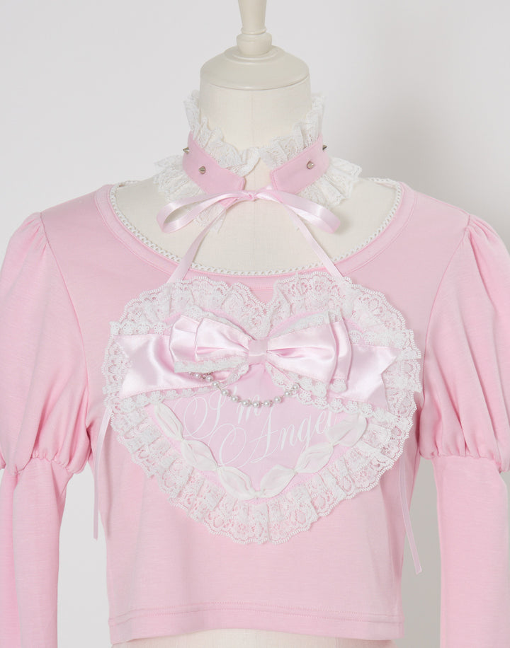 人気のハートモチーフをフロントにあしらったTシャツがロンT verで登場。ドレスライクなジゴスリーブとストレッチの効くカットソー素材が、甘さと抜け感を両立したデザインになっています。付属のチョーカーはヘッドドレスとしても使用可能。一枚でコーディネートの幅を広げる優秀トップスです。フロントのパールは取り外し可能。