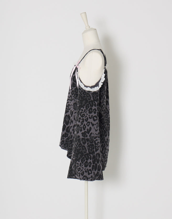 人気だったオフショルダーデザインのトップスがレオパード柄で再登場。