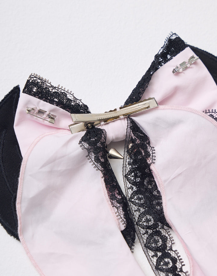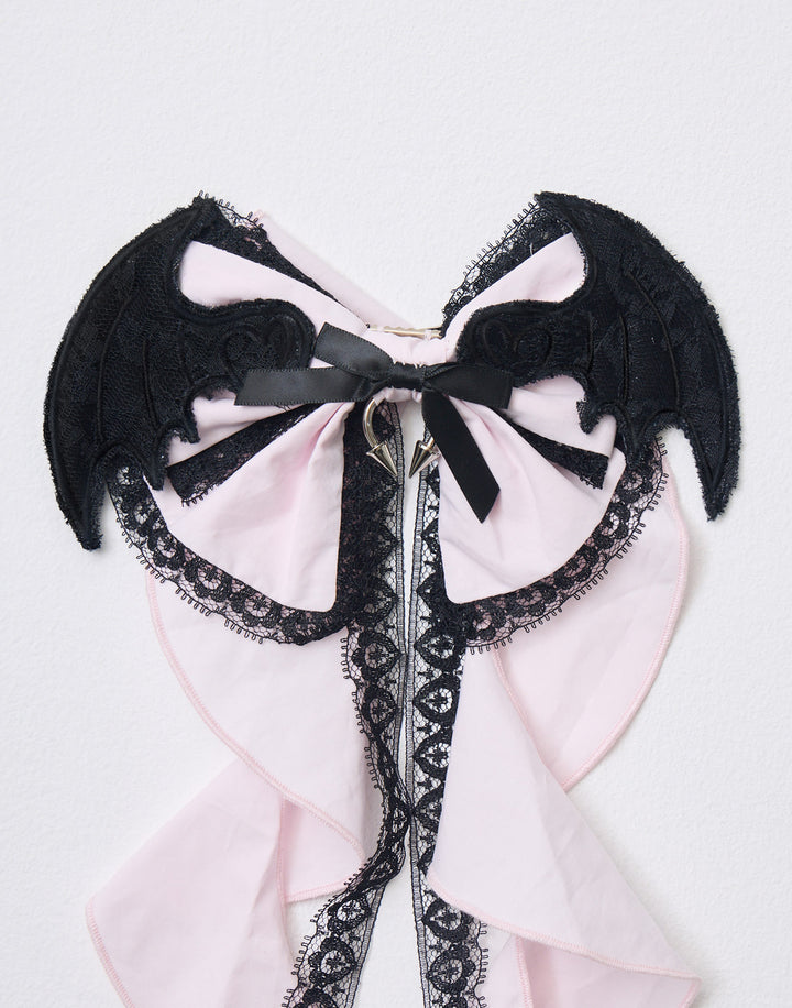 レースをあしらった悪魔の羽モチーフのヘッドドレス。